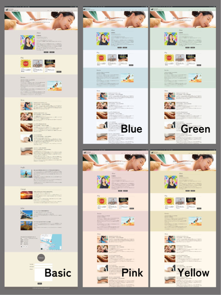 セラピストに特化したテンプレート。5つのカラーテーマから選べる